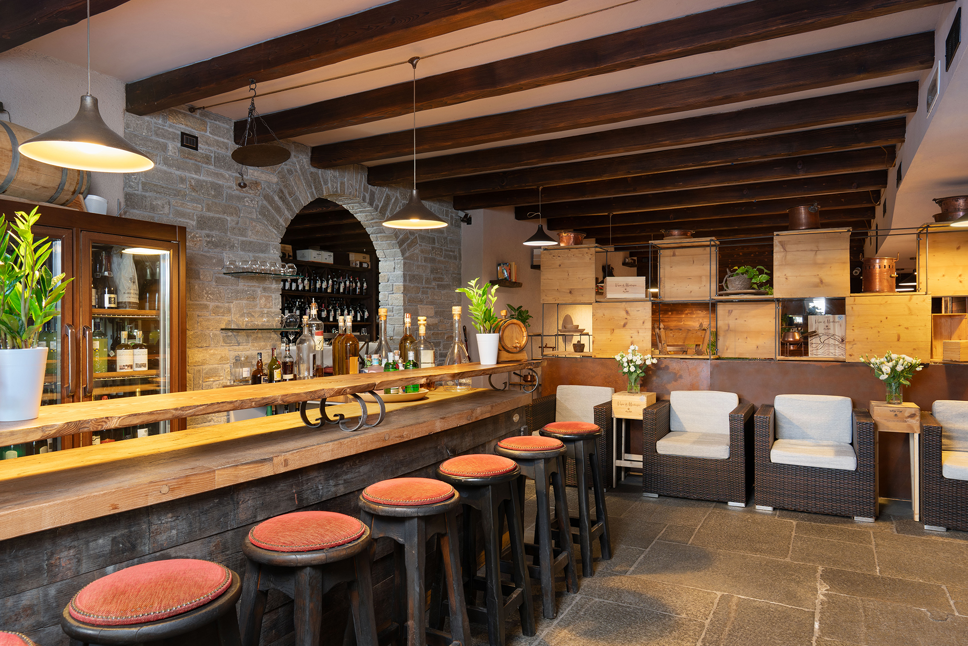 Oltre alla sala principale, INVOLT vanta una cantina intima e affascinante, dove riposano le eccellenze vinicole di Valtellina e Valchiavenna e le migliori etichette italiane e internazionali. Questo spazio esclusivo è il contesto ideale per degustazioni, eventi privati, piccoli incontri aziendali e momenti conviviali.